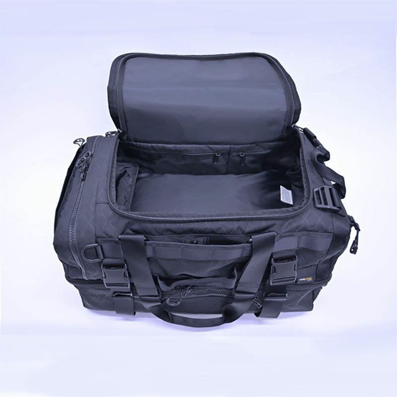 ■オリジナルエンボス加工を施し、耐久性に優れたコーデュラ生地に撥水加工を加えたことで、あらゆるシーンで活躍
